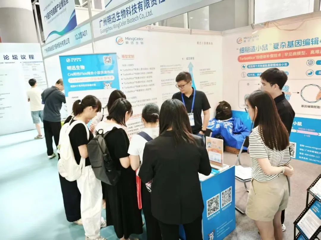 在这场行业交流的盛会中,明迅市场部积极行动,在会场精心布置展台,向在场的各位专家及精英详细展示了模式小鼠先进技术——TurboMice™四倍体补偿技术,与行业同仁们共话未来。